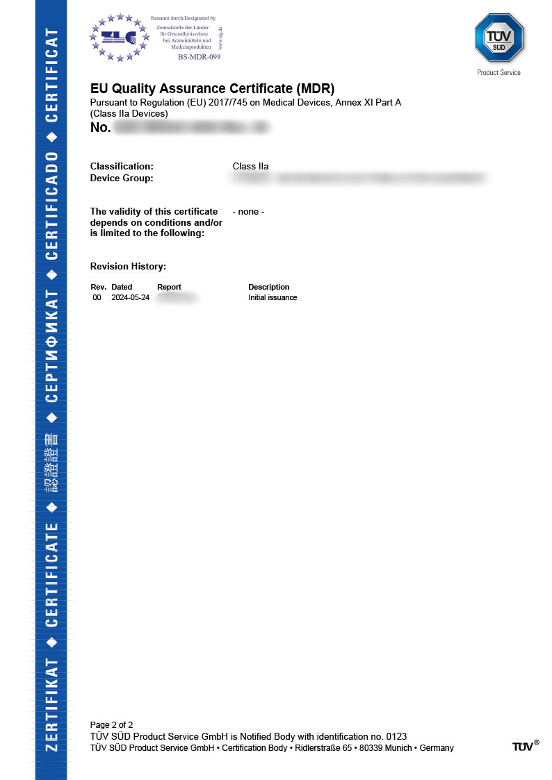 整改审核周期一共进行了3轮,在整个认证审核与发补过程,我司协同企业逐个完成了审核员对于临床评价,产品技术特点等有关的问题沟通和整改,最终顺利取得MDR证书。