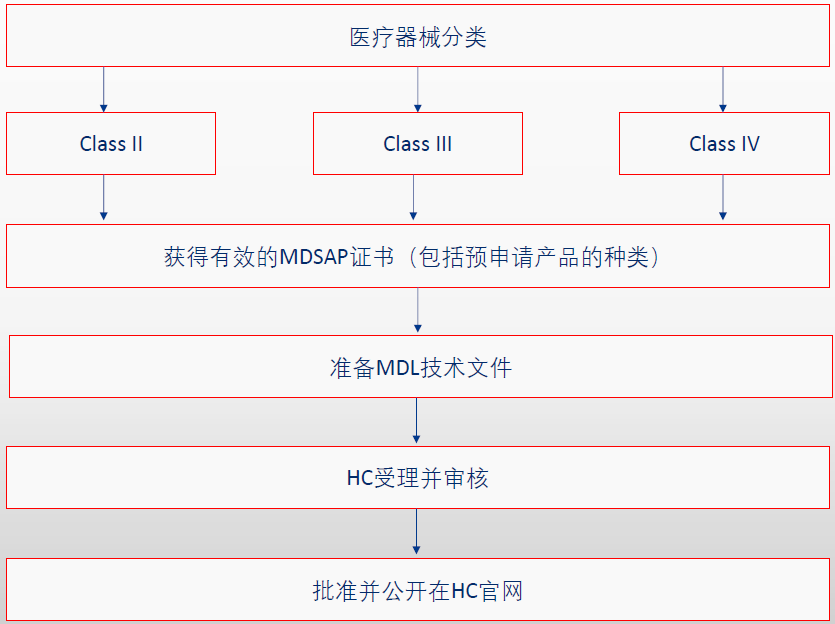 当产品在加拿大被判定为医疗器械时,需要向加拿大HC(加拿大健康部 Health Canada)递交资料进行注册;值得注意的是:加拿大医疗器械 I类申请MDEL即可,II类、III类、IV类申请MDL(申请者必须拥有MDSAP认证证书)。