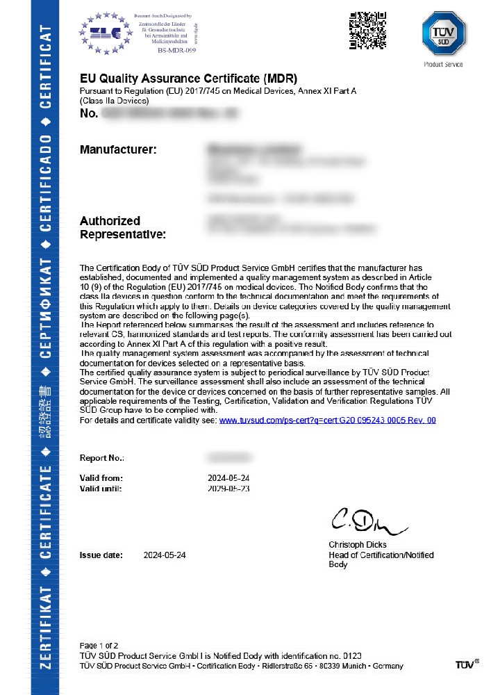 整改审核周期一共进行了3轮,在整个认证审核与发补过程,我司协同企业逐个完成了审核员对于临床评价,产品技术特点等有关的问题沟通和整改,最终顺利取得MDR证书。